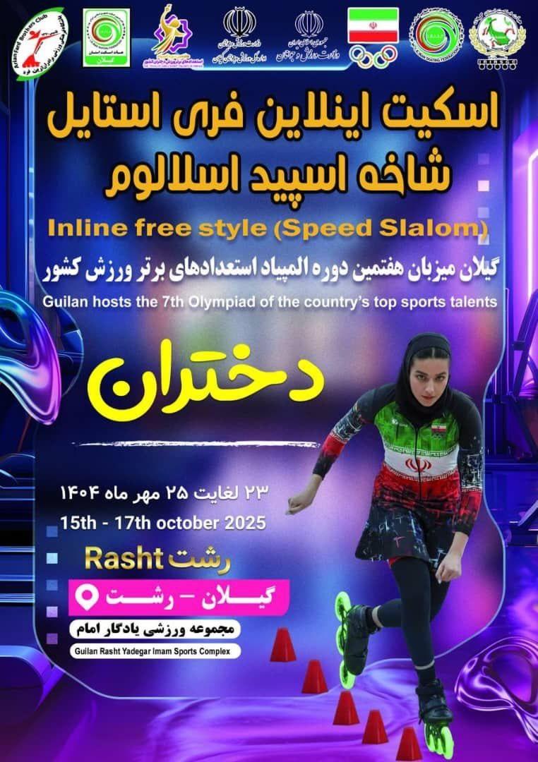 باشگاه خبرنگاران جوان - هفتمین دوره المپیاد استعدادهای برتر کشور در رشته اسکیت اینلاین فری استایل شاخه اسپیداسلالوم و در رده های سنی ۱۲ تا ۱۶ سال از فردا (پنجشنبه)با حضور برترین استعدادهای ورزشی کشور به میزبانی استان گیلان و شهرستان رشت برگزار خواهد شد.