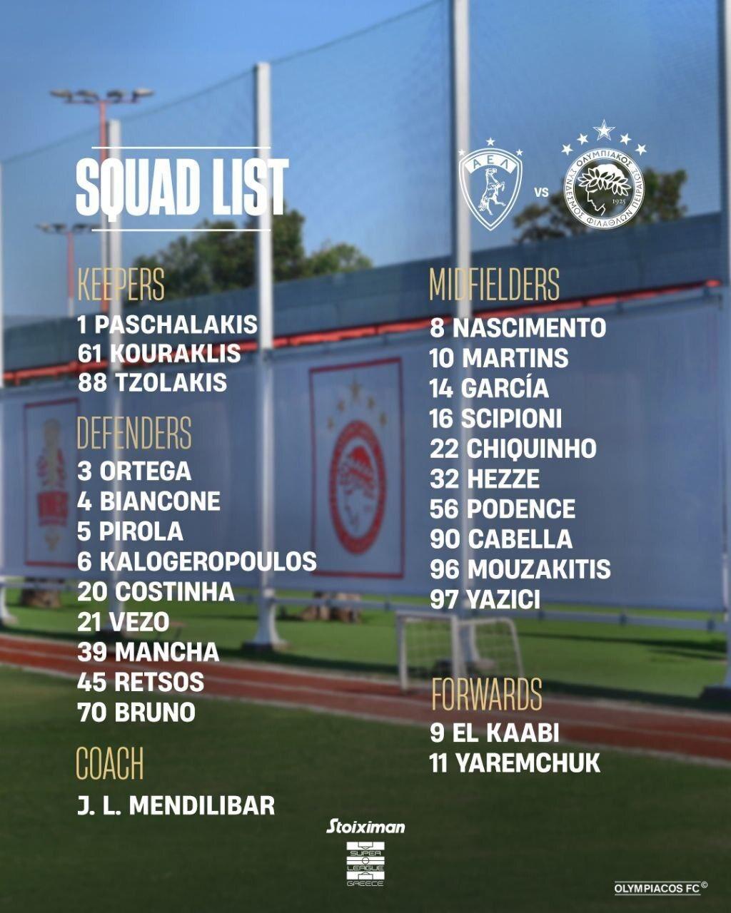 مهدی طارمی ستاره ایرانی المپیاکوس که در روزهای گذشته همراه تیم ملی فوتبال ایران بوده است برای امروز توسط خوزه لوئیس مندلیبار سرمربی اسپانیایی المپیاکوس خط خورد تا بازی را تلویزیون